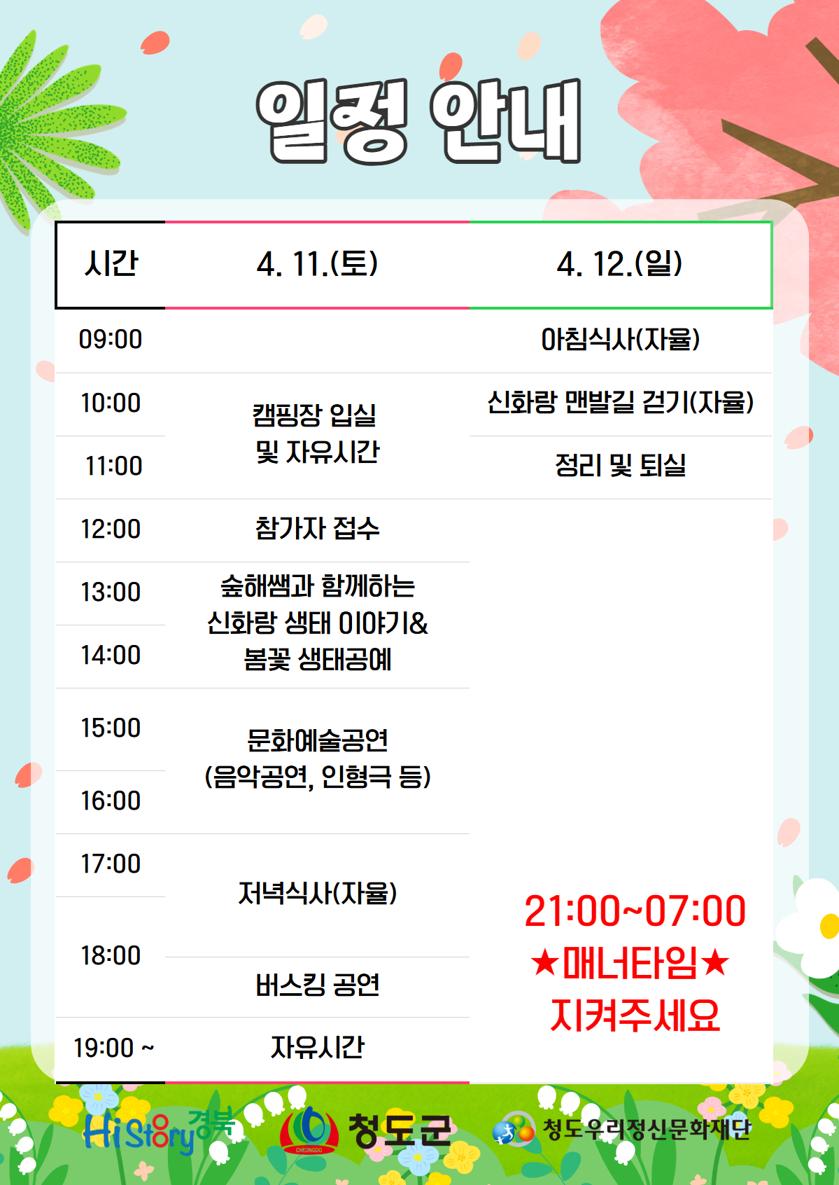 행사제목[대기자 등록만 가능] 화랑마불계절여행, 봄꽃캠핑
